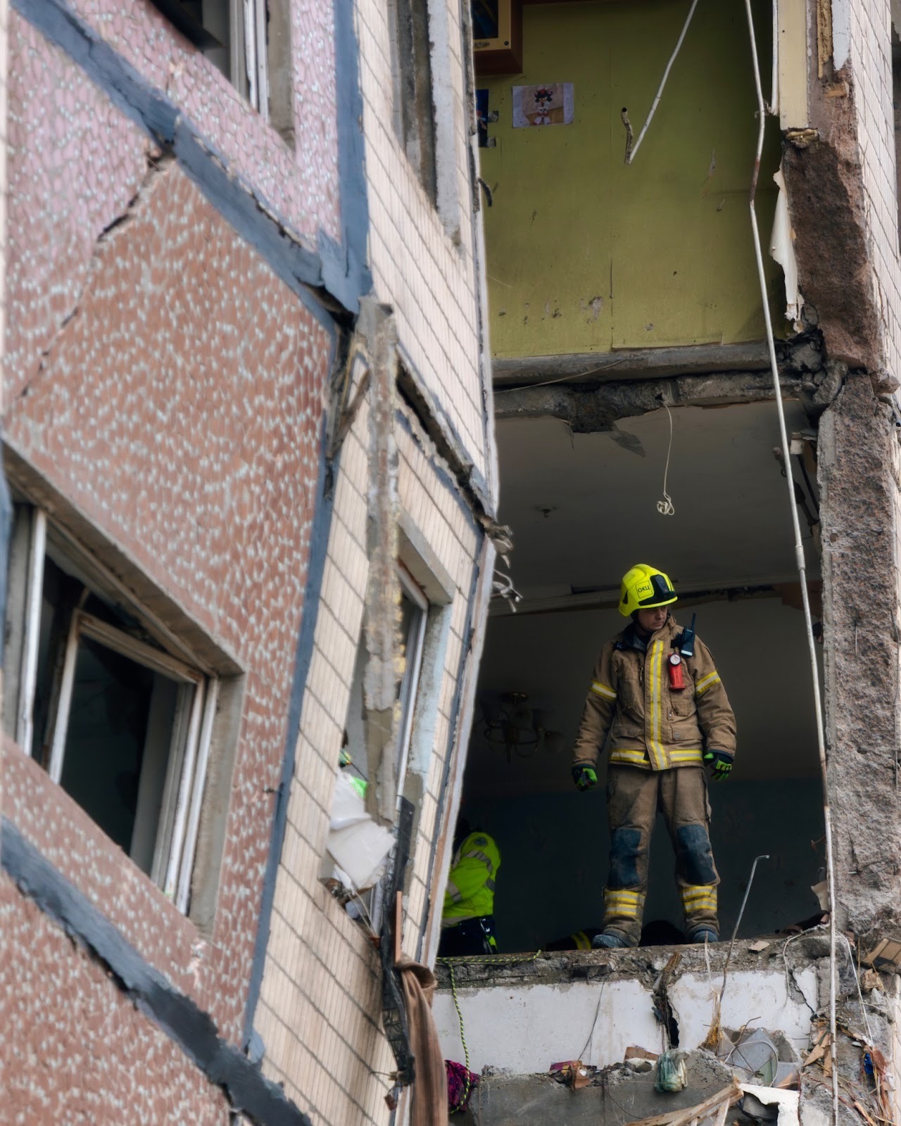 У Дніпрі російський безпілотник поцілив у дев’ятиповерхівку, в результаті зруйновані квартири з 4 по 6 поверхи. Троє людей загинули, їхні тіла витягли з-під завалів, 11 поранено, зокрема двоє дітей. У Дніпрі оголосили дводенну жалобу через нічний російський удар, який забрав життя трьох людей.