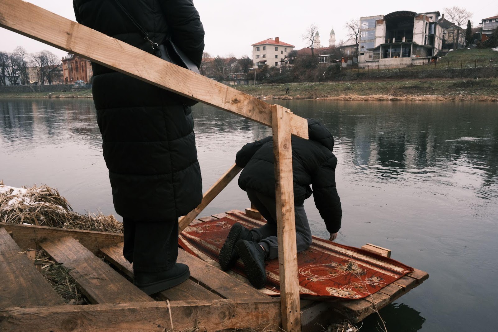 I reached the exit from the city on foot. On the way to the park, I met a herd of people walking towards me. I decided not to ask passers-by where there are so many showers on the street on Sunday morning in Uzhgorod, so I went to the epicenter of events. As it turned out, then there was Epiphany, a Christian holiday dedicated to the baptism of Jesus in the Jordan River. The closest in the area was the Uzh River (oddly enough). A maximalist views on the life of the father who ran the ball gave him the will to consecrate it (the river) whole. I approached my father, when he gave his apron to the little boy with a sincere smile, to all thirty-two, and asked: