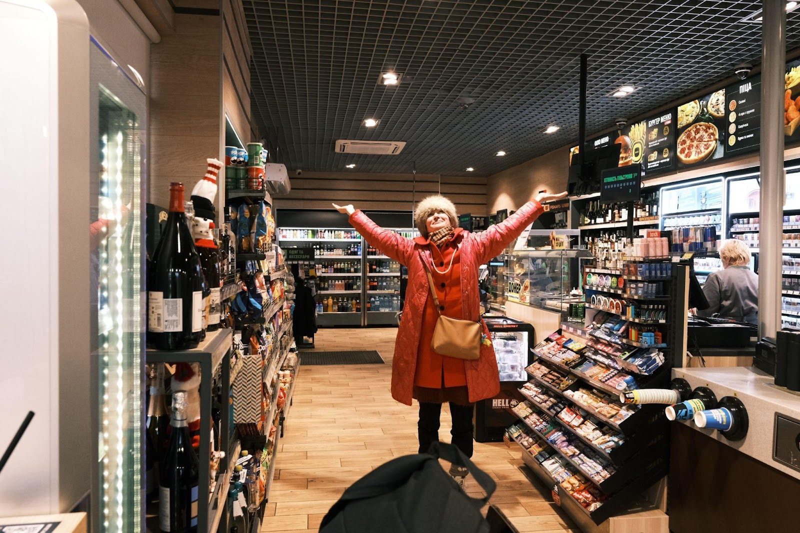 At the roundabout (where Paul and Elina dropped me off), I passed by the gas station and hesitated: should I go to warm up, have a coffee, or immediately take a seat on the road. Inside the skull there were signals to go on the road, and something inside (hereinafter I will call it “something inside” by my Raccoon), so, Raccoon prompted to go to the gas station.