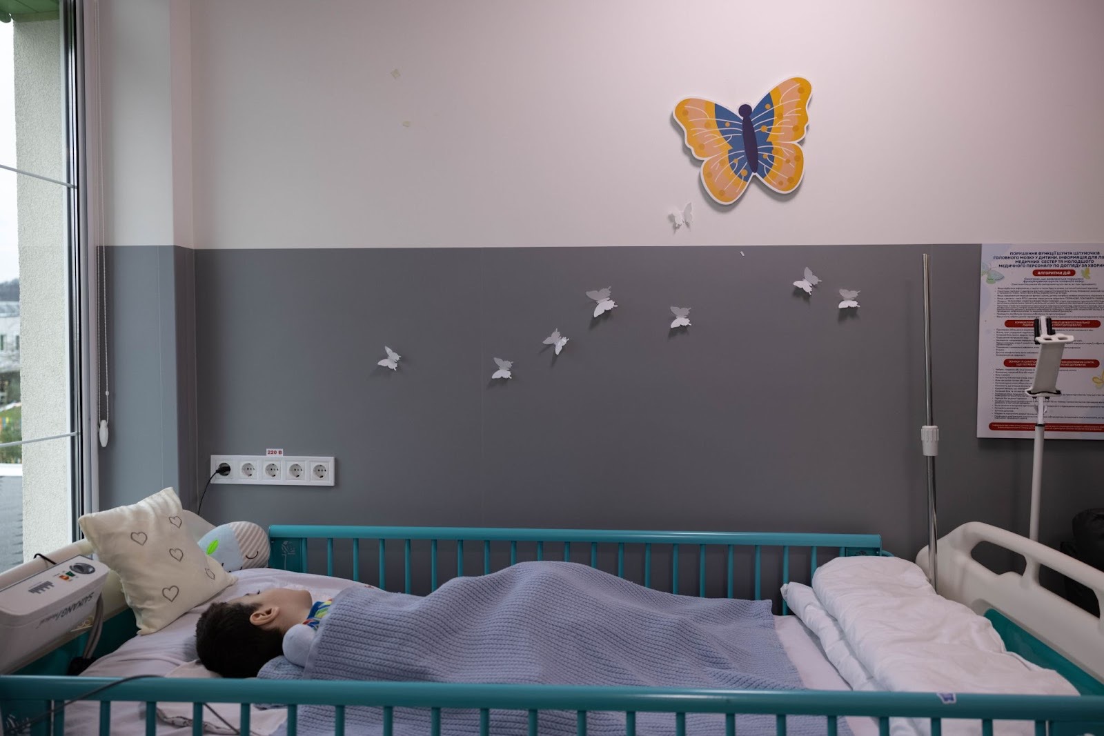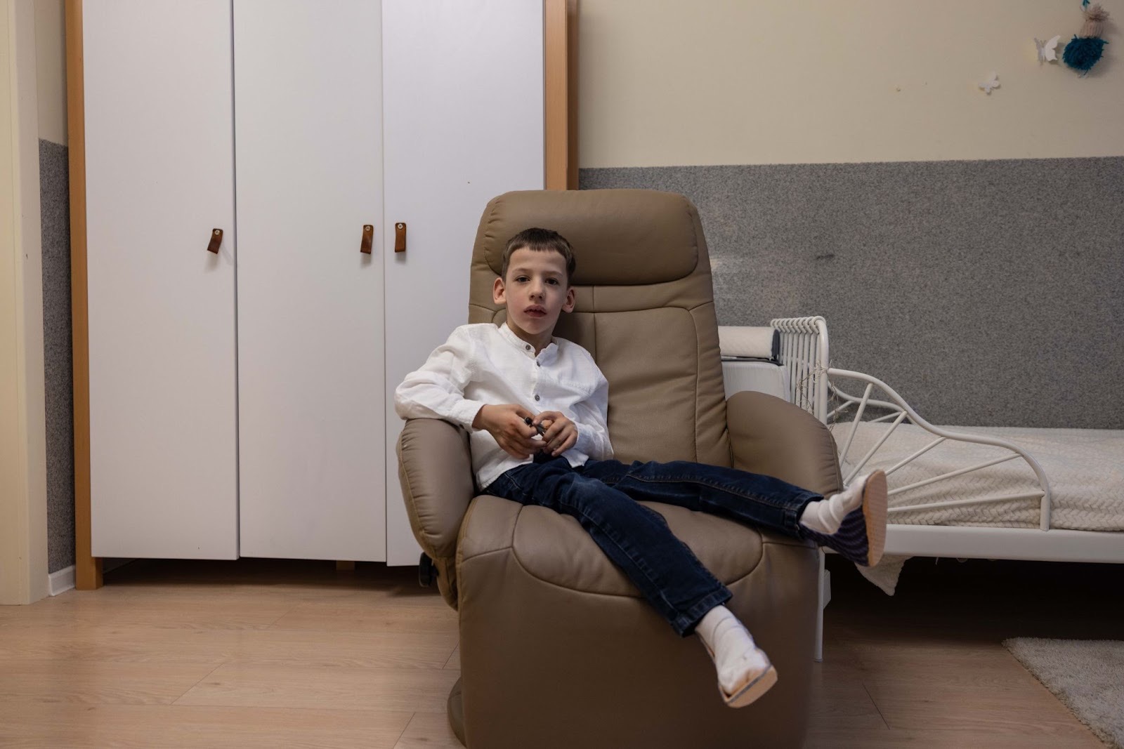 На першому поверсі «Дому Метеликів» — паліативне відділення, на другому — реабілітаційне. Там живуть діти різного віку, які потрапили до «Міста Добра» з усіх куточків України. Одна з кімнат об’єднала хлопців із прифронтових і відносно спокійніших територій. Хлопчик Іван каже, що любить фотографувати. Даю йому свою камеру і він робить декілька знімків працівникам хоспісу, а ще — мені. «Треба усміхатися!», — каже Іван, і я усміхаюсь йому у відповідь.
