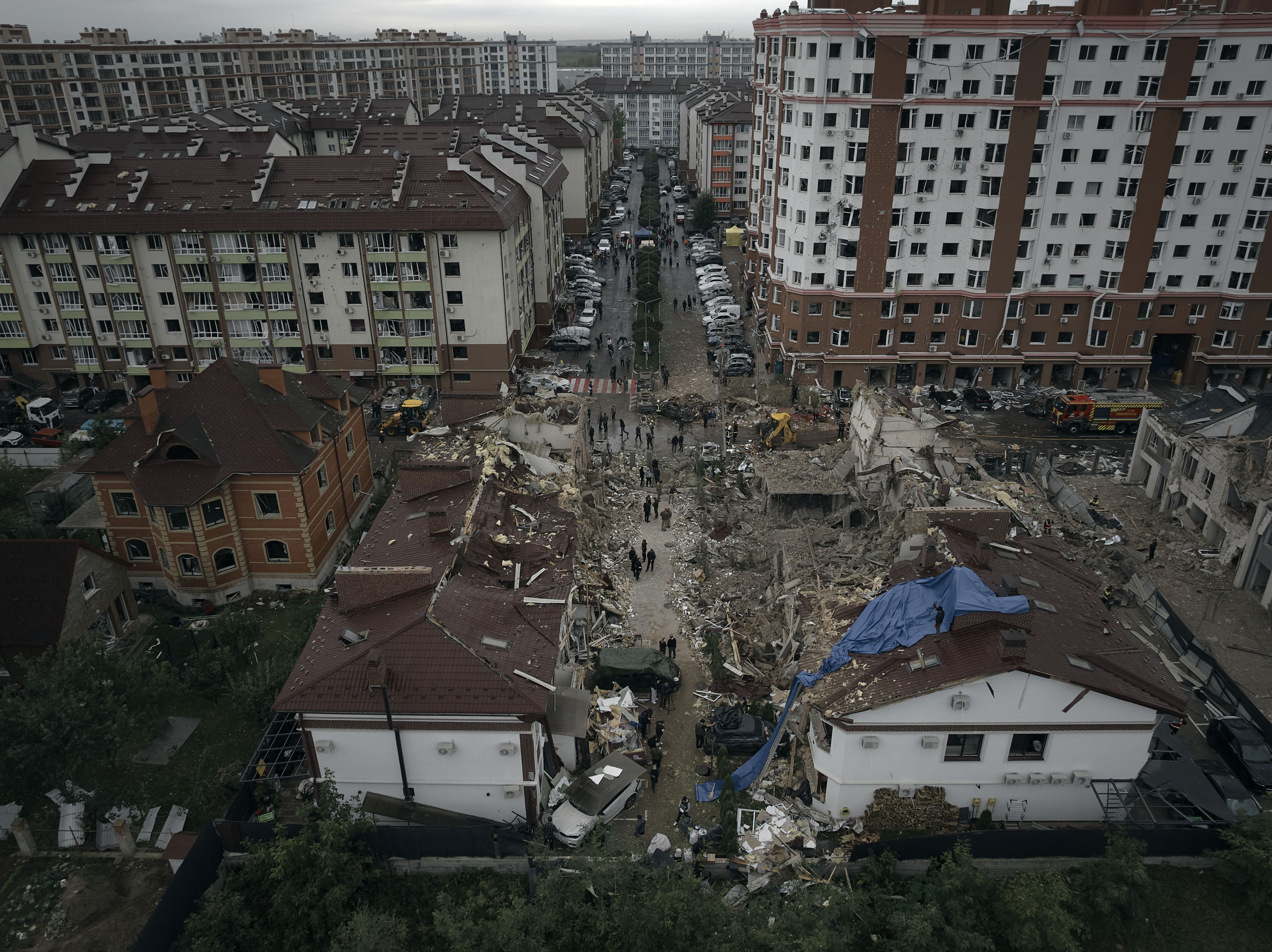 Великі руйнування російські атаки спричинили на Київщині, зокрема в Білоцерківському, Фастівському, Обухівському й Бучанському районах. Зруйнований житловий комплекс у Петропавлівській Борщагівці. Тривають роботи з ліквідації наслідків обстрілу. Відомо про 28 постраждалих, серед них — троє дітей.