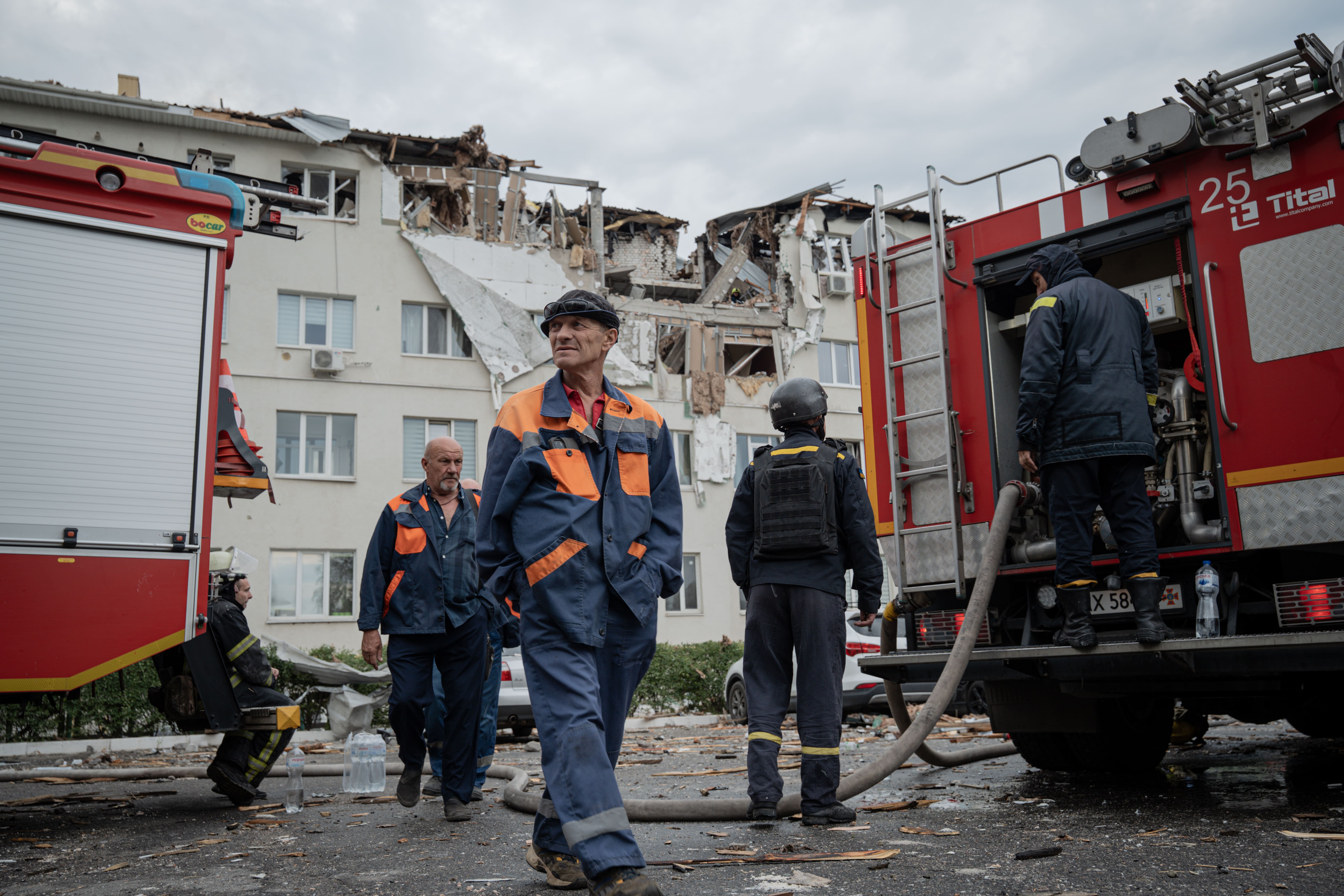 Rescuers worked under the constant threat of repeated strikes. When the alarm was sounded, they had to interrupt their work and take shelter, and then return to clearing the rubble and extinguishing the fires.