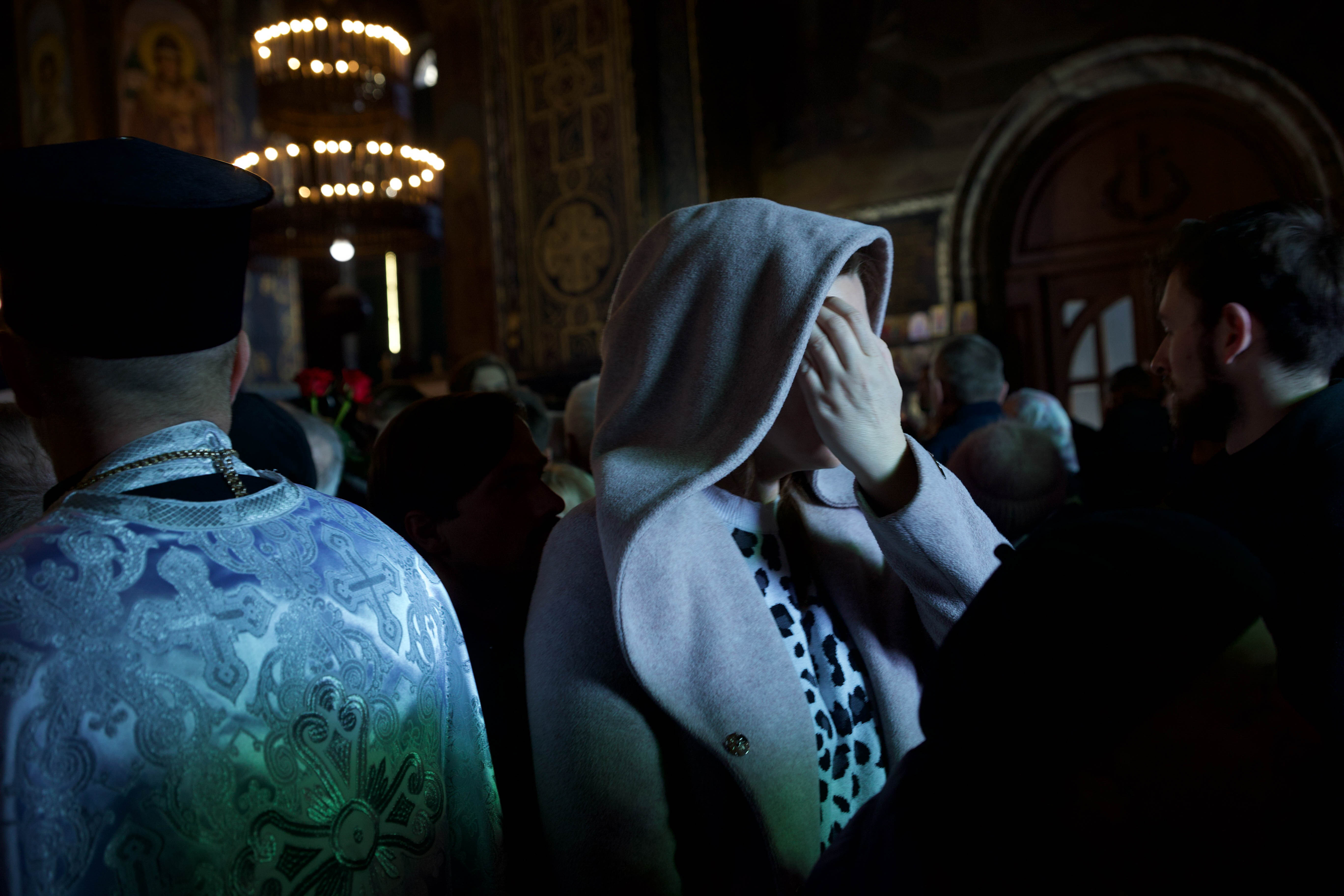 Жінка під час похоронної церемонії почесного патріарха Православної церкви України Філарета у Києві, Україна, 22 березня 2026 року. Фото Олександра Магули / Суспільне Новини