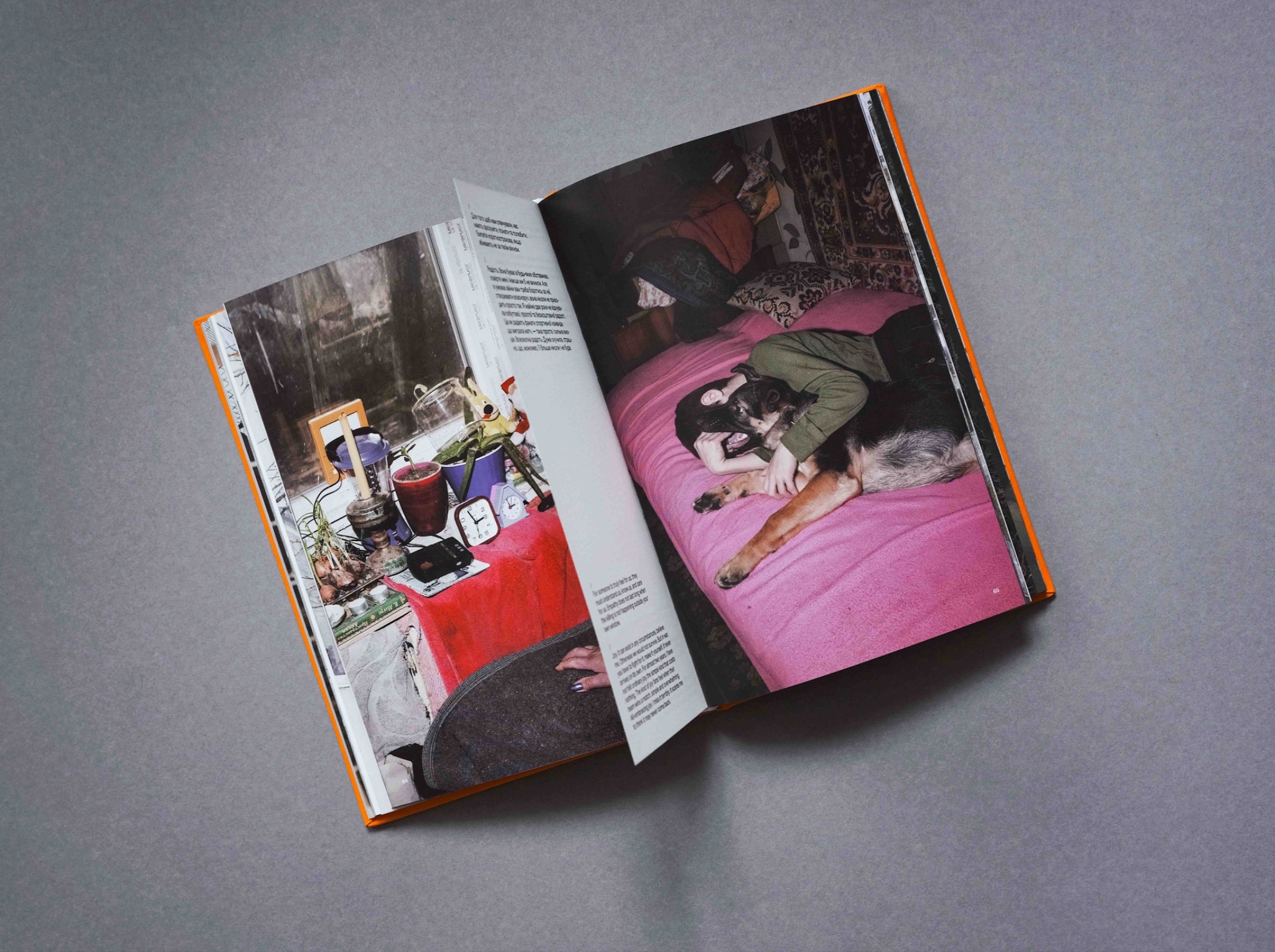 Фотокнига документальна й водночас наповнена символами. Обкладинка яскраво помаранчевого кольору, як вогонь, а папір для форзаців — сірий, як попіл. Світлини людей та особливостей їхнього побуду яскраві, зняті зі спалахом. Для зйомок пейзажів я використовувала фільтри, які пом’якшували зображення, щоб створити атмосферу розмитого, непевного майбутнього. Тому портрети і пейзажі сильно контрастують між собою за настроєм та естетикою.