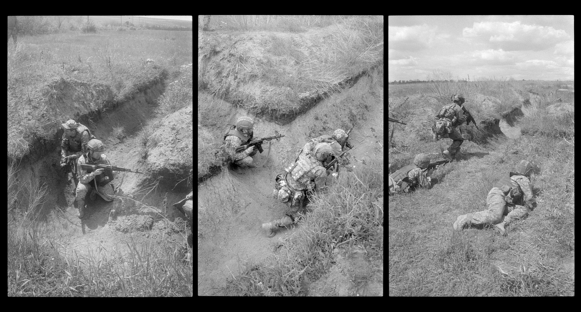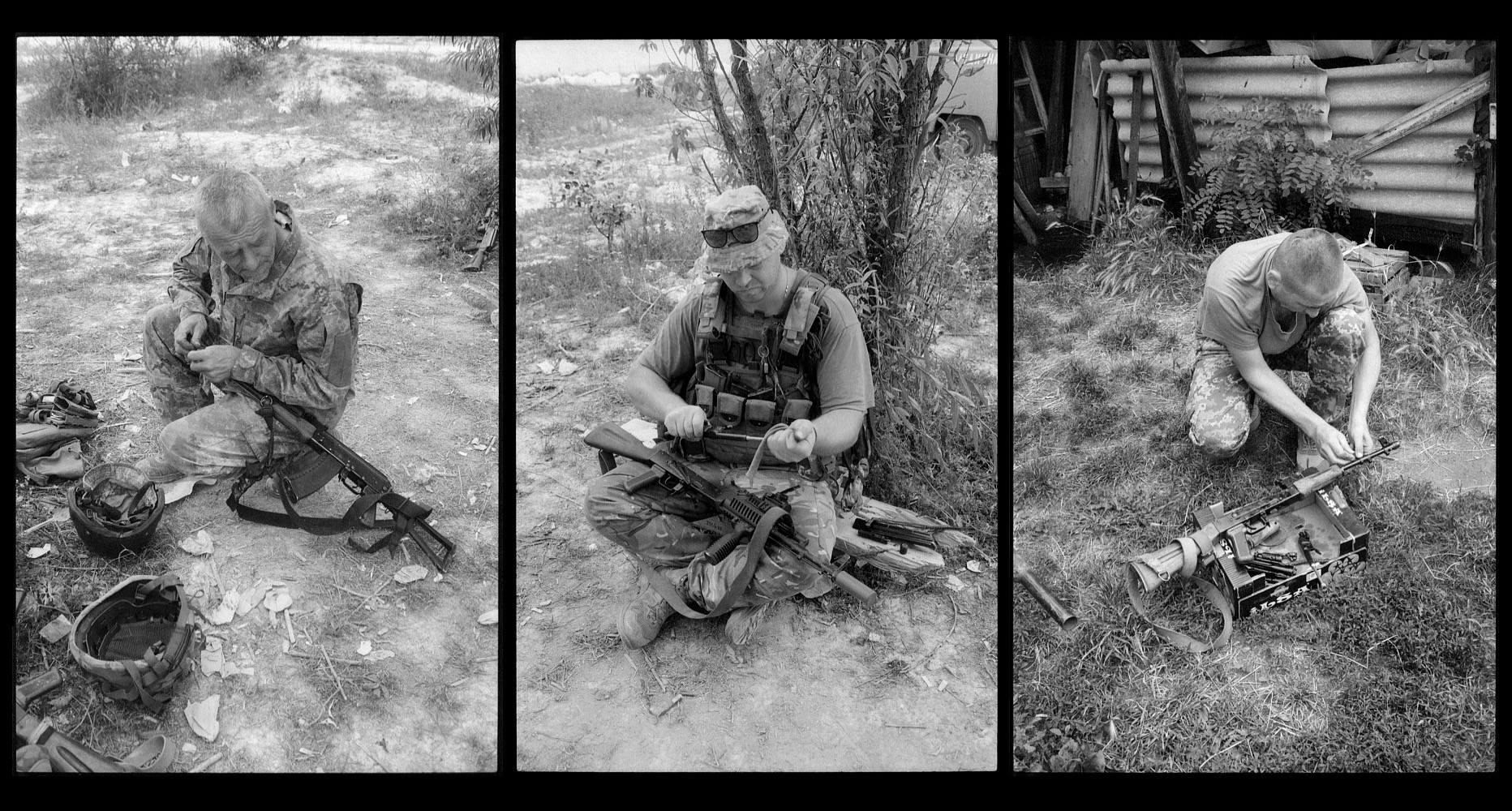Формат триптихів — це також спосіб розповісти про військову рутину, про щоденну повторюваність тих самих дій. Одна фотографія — це документ події чи сторінка в історії, дві — це пошук візуальних паралелей, а три — це вже коротке оповідання, можливість показати одноманітність дій.